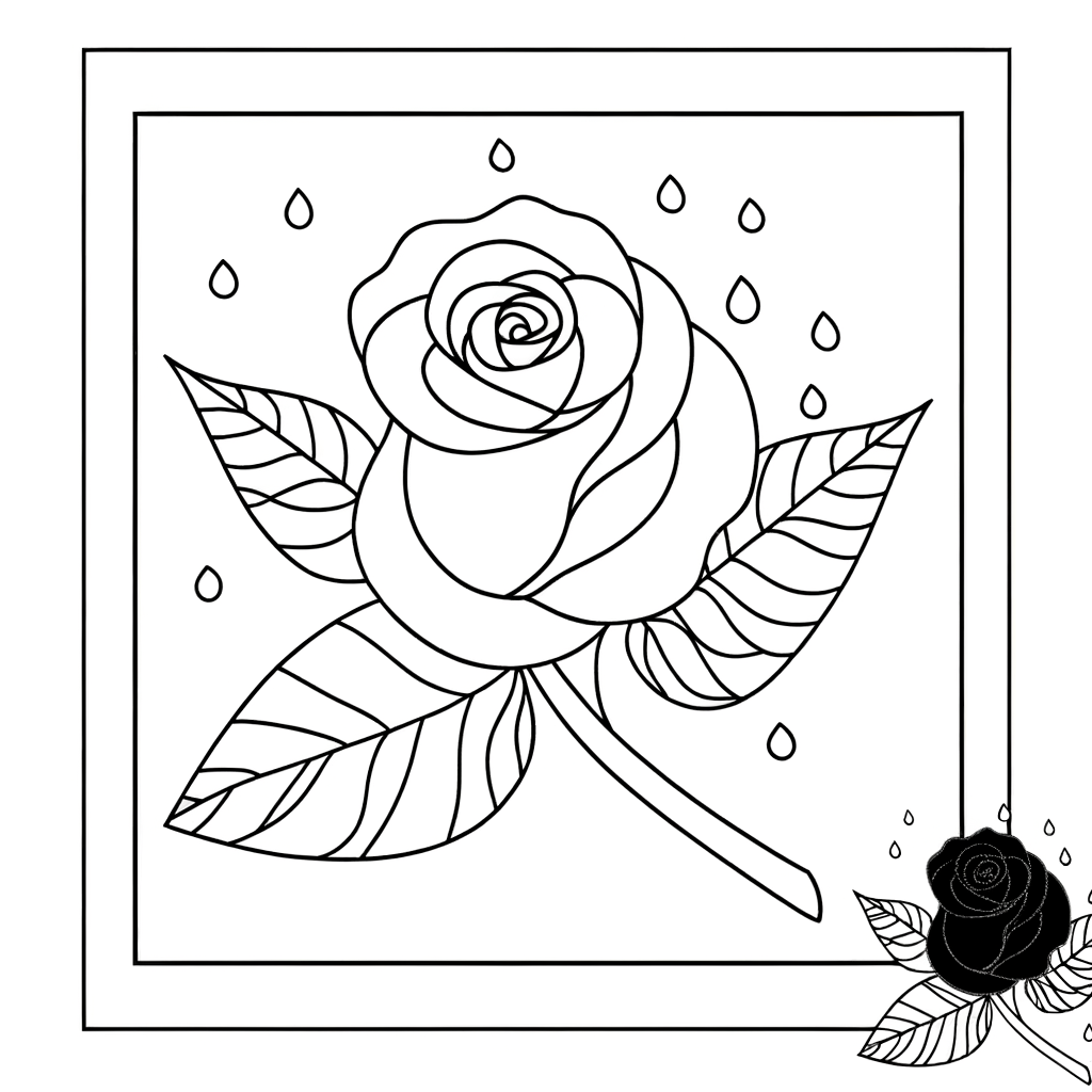 Rød Rose med Dugdråber Farvelægningsside