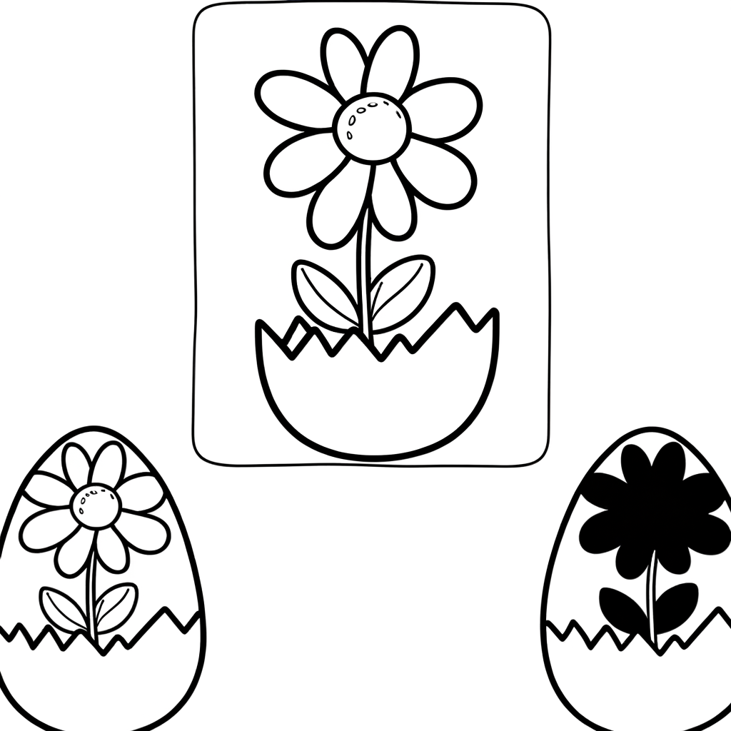 Denne dejlige maleside viser en smuk forårsblomst, der magisk vokser fra et æg, og kombinerer påske- og forårsmotiver. Perfekt til at fejre nyt liv og årstidsfornyelse, dette design tilskynder til kreativitet, mens det lærer børn om naturens fornyelse.