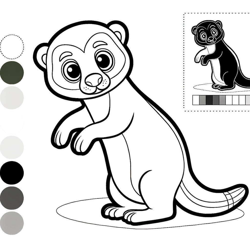 This delightful coloring page features an adorable ferret standing upright on its hind legs in a curious pose, perfect for exploring creativity. The detailed illustration captures the playful and inquisitive nature of these beloved pets, making it ideal for children and animal enthusiasts alike.