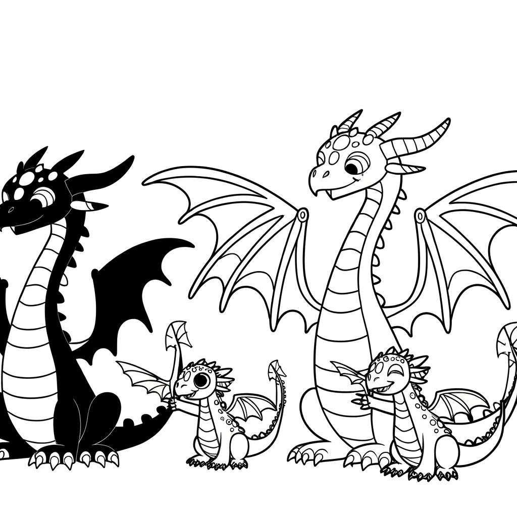 Plongez dans un monde magique avec notre page à colorier 'Famille de Dragons avec Bébés'. Présentant une famille de dragons enchanteurs prenant soin de leurs adorables bébés, cette page est parfaite pour les enfants qui adorent les créatures mythiques.