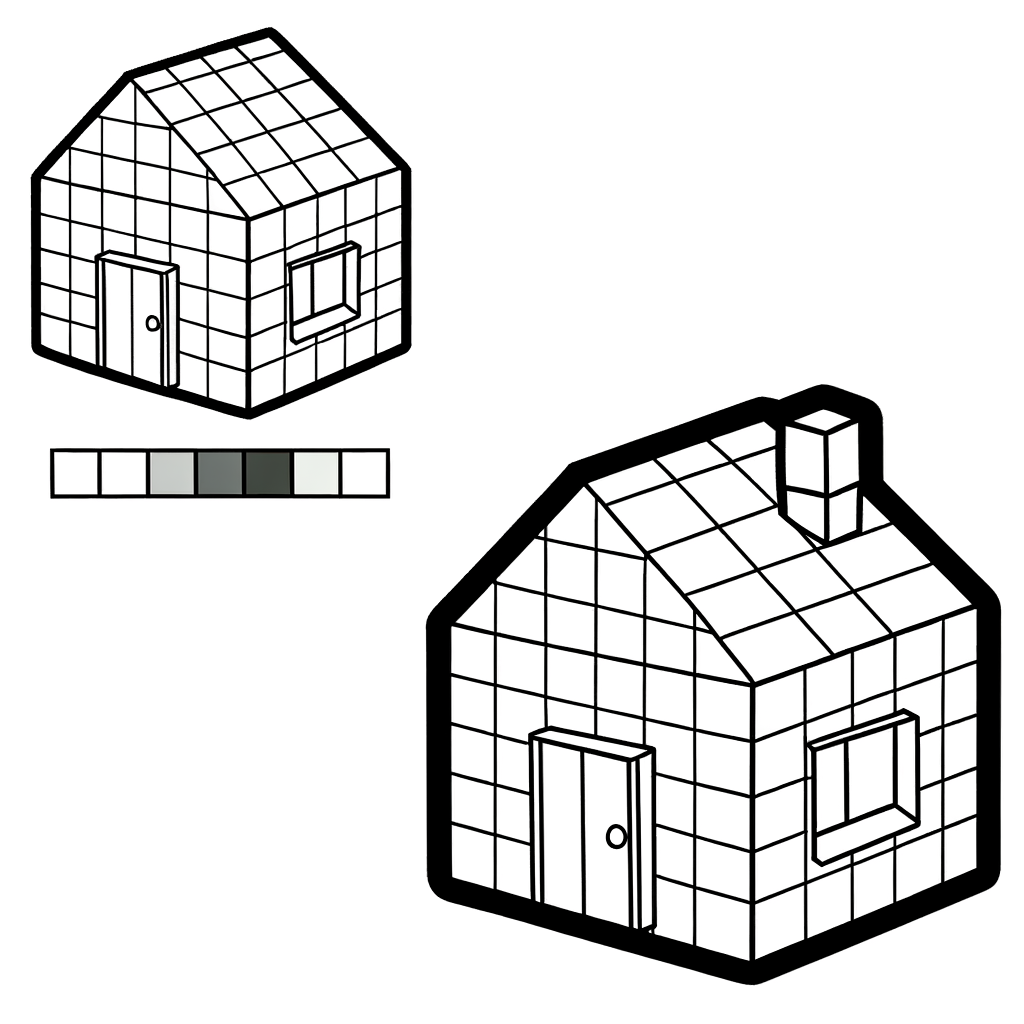 Page à colorier Maison Pixel - Style Cubes