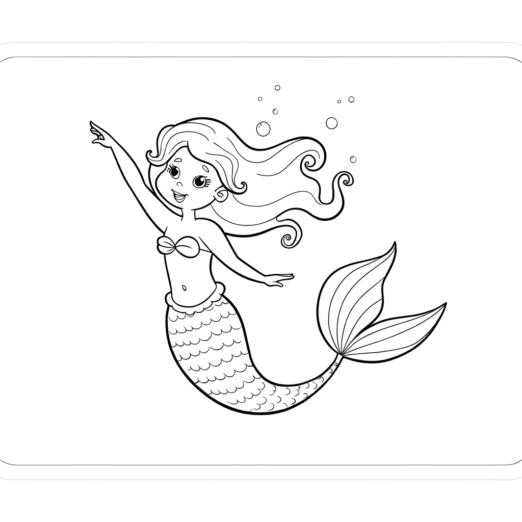 Deze betoverende kleurplaat toont een cartoonachtige zeemeermin die gracieus onder water draait in een elegante draai. De gedetailleerde illustratie vangt de schoonheid van onderwaterbeweging met vloeiende haren en staart, perfect voor jonge kunstenaars om tot leven te brengen met hun favoriete kleuren.