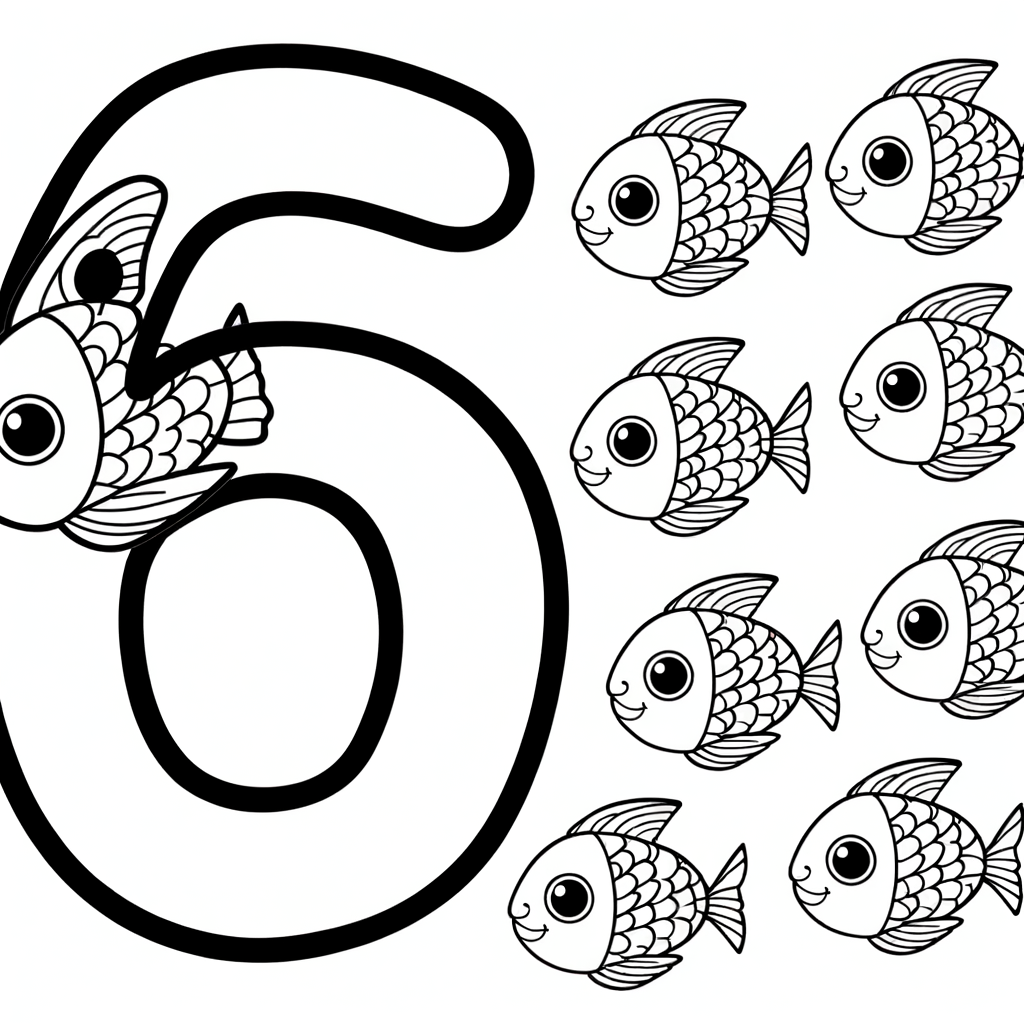 Ontdek onze kleurpagina met het nummer 6 en zes vrolijke vissen. Perfect voor kinderen die van tellen en kleuren houden!