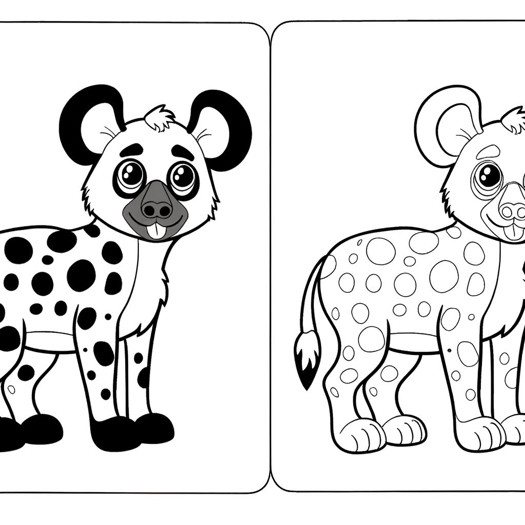 Denna detaljerade målarbild visar en majestätisk fläckig hyena i en vaken pose, som visar upp sitt distinkta fläckiga pälsmönster. Perfekt för barn och vuxna som älskar afrikansk vildmark, erbjuder denna utskrivbara design ett engagerande sätt att lära sig om dessa fascinerande rovdjur samtidigt som man utvecklar konstnärliga färdigheter.