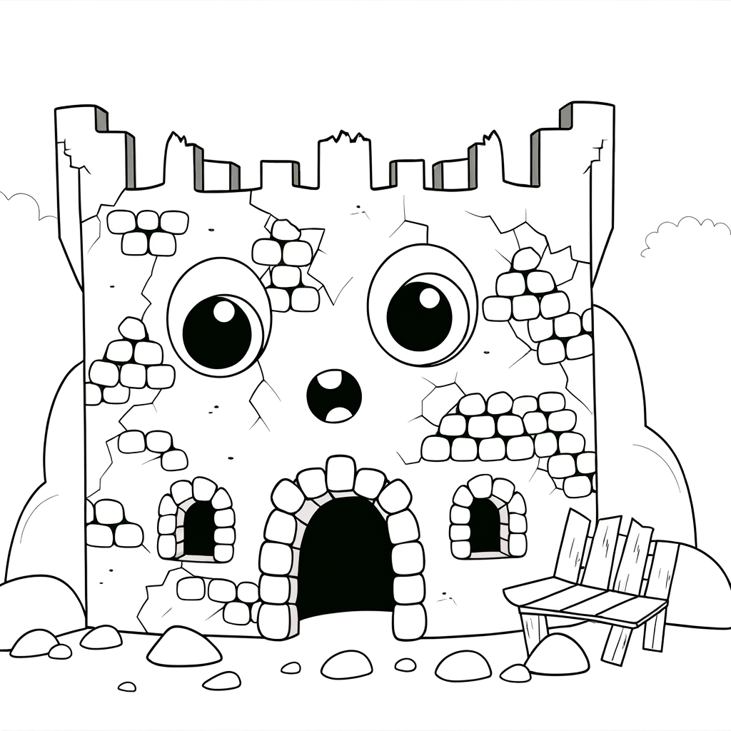 Denna förtrollande målarbild visar ett tecknat gammalt slott med vackert detaljerade fallande väggar och väderbitet stenverk. Den fantasifulla designen fångar mysteriet och historien bakom medeltida ruiner, vilket gör den perfekt för kreativa målaräventyr.
