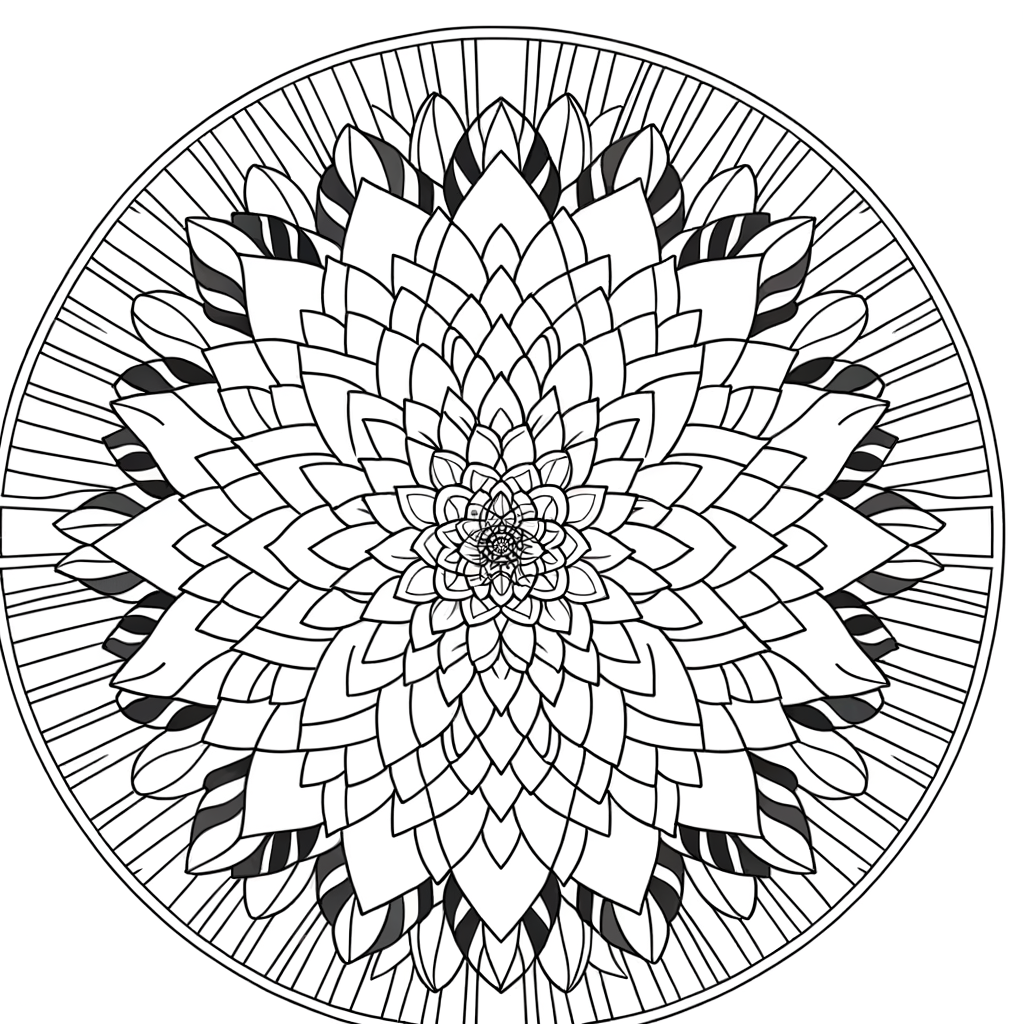Dahlia Mandala Coloring Page - Layered Petals Design