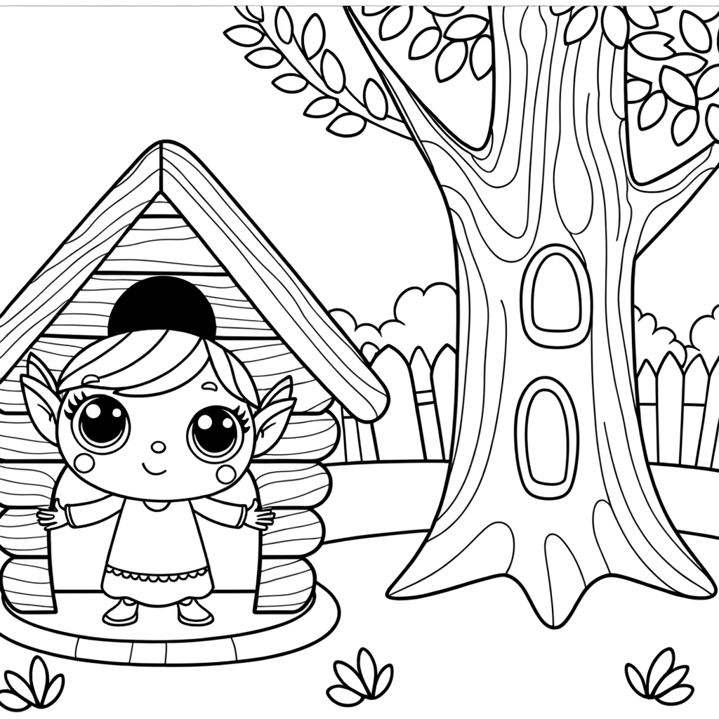 Denna förtrollande målarbild visar en tecknad älva som bygger sitt miniatyrdrömhus inuti en mysig trädhåla. Barn kommer att älska att ge liv åt denna magiska skogsscen med sina favoritfärger medan de föreställer sig älvans äventyr i skogen.