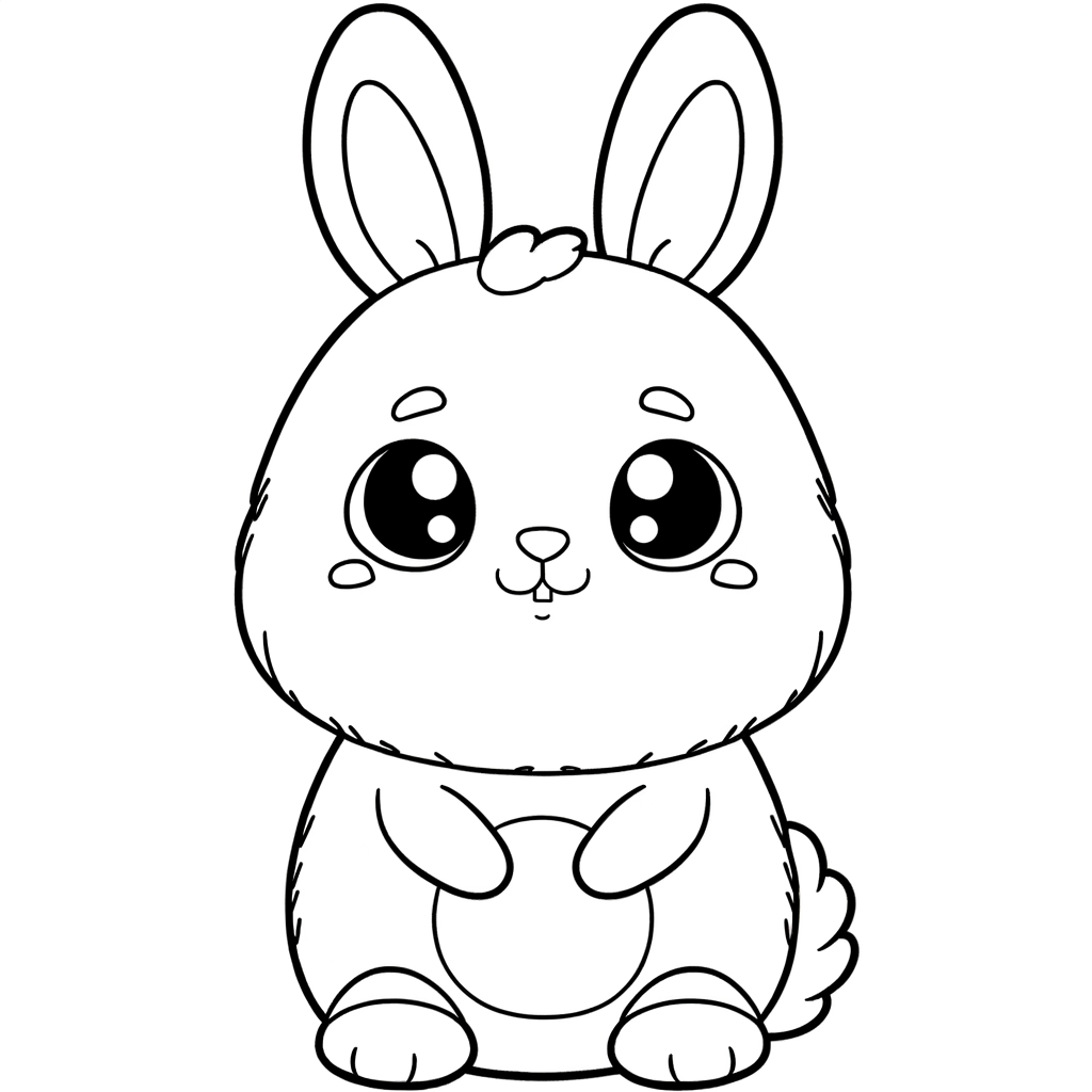 This delightful coloring page features an adorable fluffy bunny rabbit sitting in an upright position with its ears alert and perked up. The detailed illustration captures the soft, fluffy texture of the bunny's fur, making it perfect for young artists to practice shading and coloring techniques.